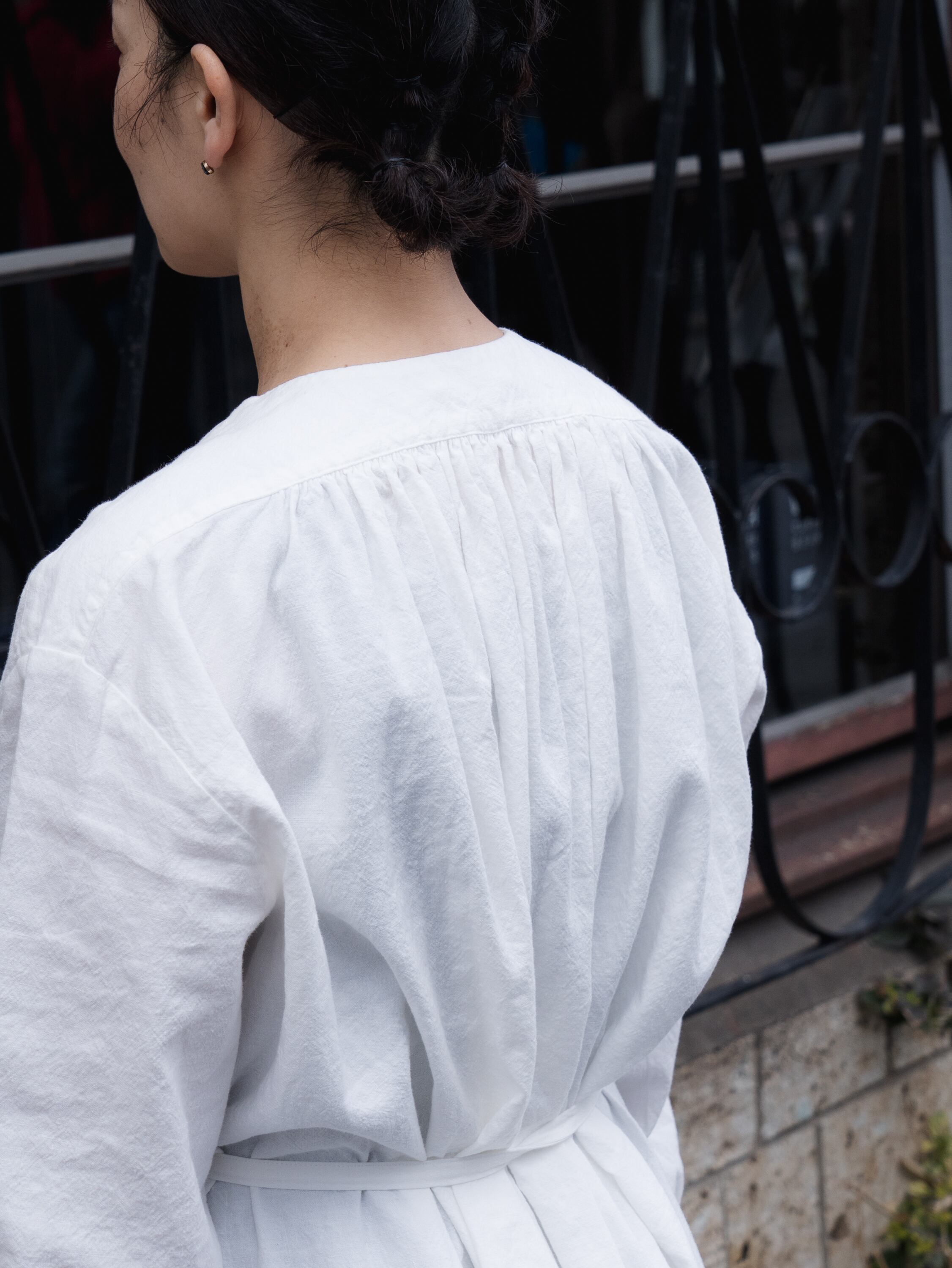今回も私たちが普段着用しているフランス20世紀初頭のビンテージの衣服をモチーフとして、UpcycleLinoの生地を用いて、エシカルで心地よい日常着をお作りしました。